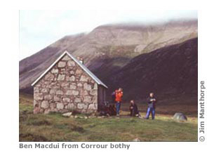 Scotland is blessed with a number of bothies: simple mountain shelters, often restored from old, ruined crofts and typically located in beautifully remote spots. Bothies are unmanned and free for anyone to spend a night or two in but they are very basic shelters, usually consisting of a fireplace, dusty floor, some resident mice and, if you're lucky, a few chairs and a sleeping platform.